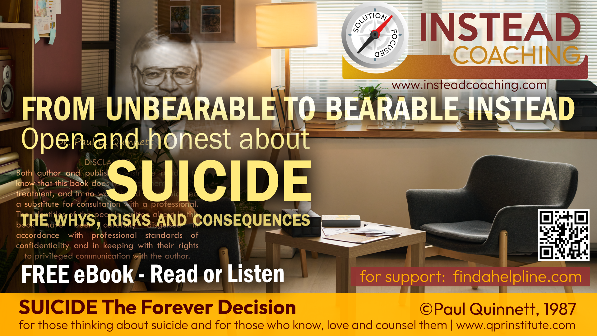 Suicide the Forever Decision, For those Thinking about Suicide and for Those who Know, Love and Counsel Them, by Paul Quinnett, Ph.D ©Paul Quinnett, 1987 | www.qprinstitute.com